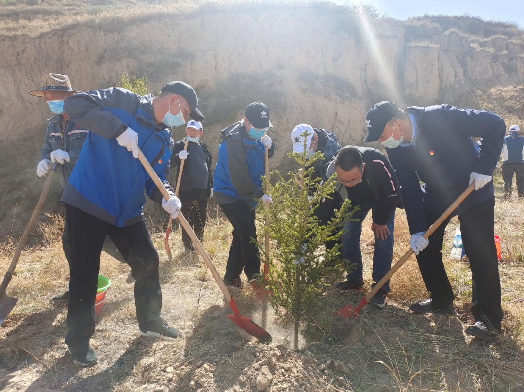 克日,,,甘肃省交通工程建设监理有限公司机关第二党支部联合省交通运输厅投融资治理办公室党总支、甘肃五环公路工程有限公司党总支在甘肃青年生态修复林开展结对共建义务植树运动。。。。省交通运输厅投融资治理办公室党总支、交通监理公司、甘肃五环公路工程有限公司50余名党员向导干部加入运动。。。。