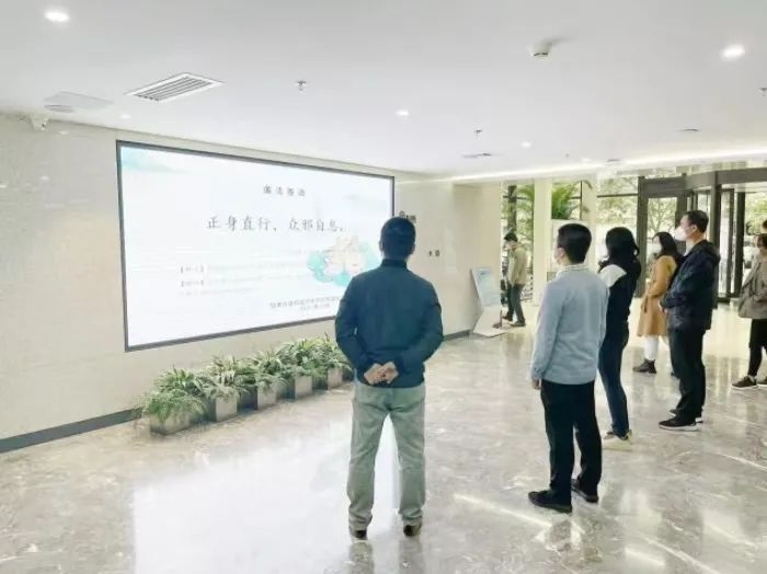 文化的作用如春风化雨,, ,,润物无声,, ,,内化于心,, ,,外践于行。。。。。克日,, ,,省修建设计院一楼宣传大屏播放的“正身直行,, ,,众邪自息”的清廉寄语,, ,,吸引了多名干部职工驻足寓目。。。。。