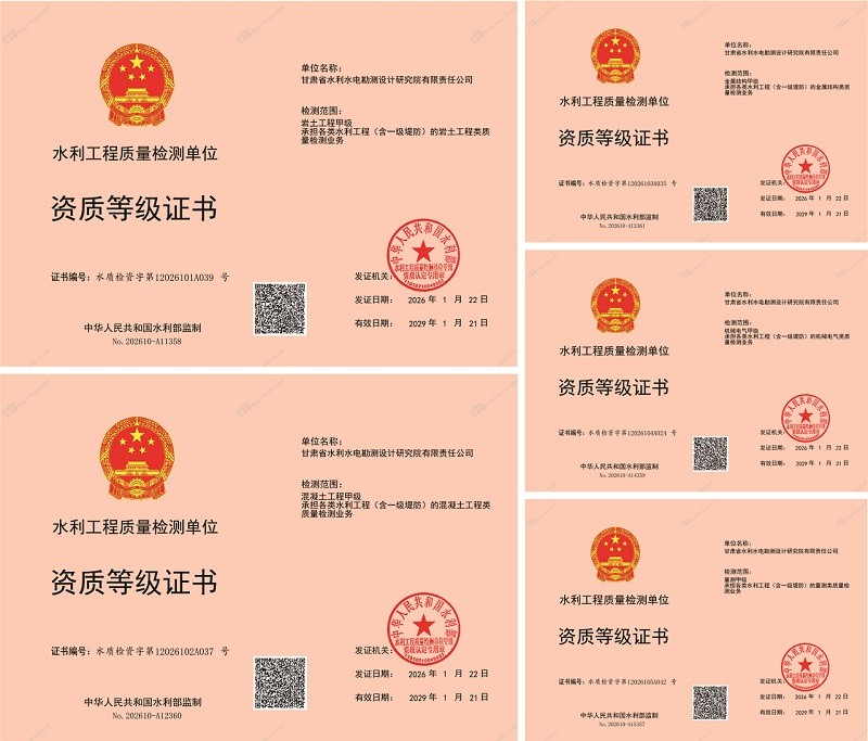 近期,,,,,省水电设计院乐成获批岩土工程、混凝土工程、金属结构、机械电气、量测五项水利工程质量检测甲级资质,,,,,标记着公司在水利检测全域结构实现跨越式突破。。。。