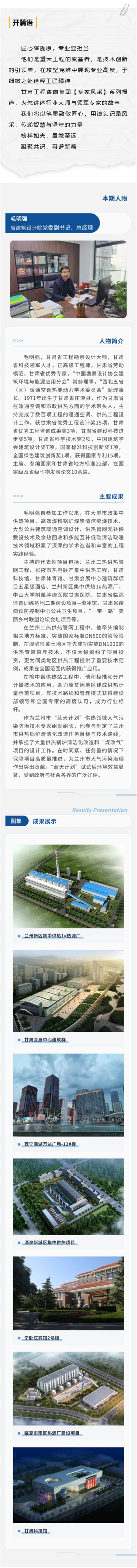 《专家风范》专题报道① | 甘肃省工程勘探设计巨匠毛明强:深耕热能工程,,,,引领绿色供热,,,,以立异手艺守护碧水蓝天